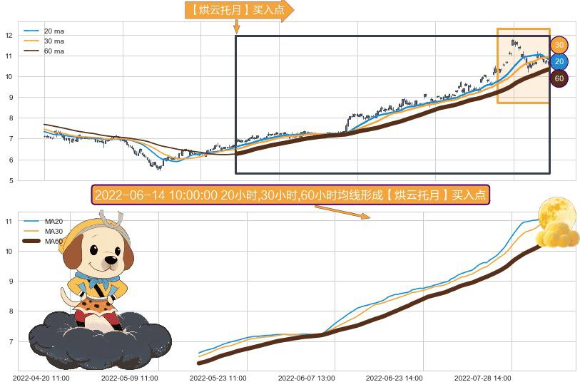 ⚀ 2022-05-16 09:00:00小时-2022-08-12 14:00:00小时显现 20小时-30小时-60小时均线 【烘云托月】买入点 看多信号,后市看涨,买入