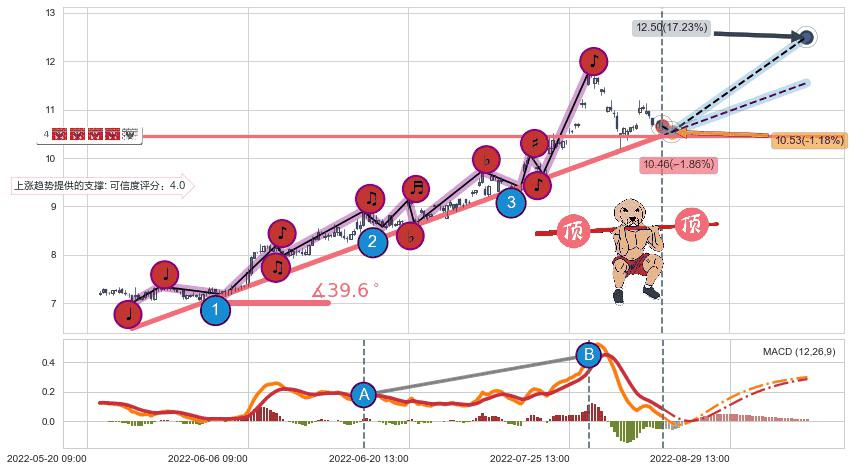 ➢ 预测:2022-08-16 13:00,【小幅回撤】稳定目前上涨趋势的前提下,预测价格:10.53