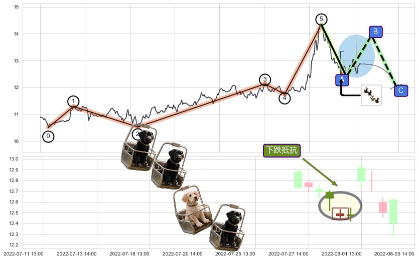 ♘ 支撑价格位10.57,可信任强度85.95%,距离最后交易2022-08-12 14:00形成的收盘价格12.87相差 -17.87%