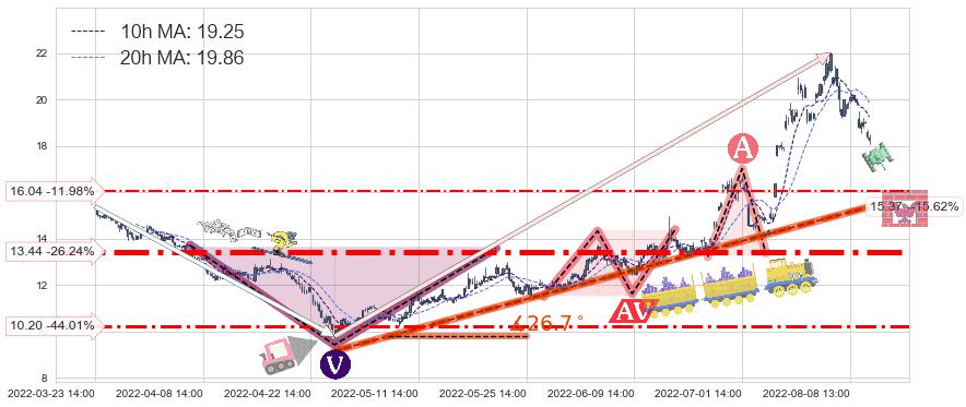 ♘ 支撑价格位16.04,可信任强度44.28%,距离最后交易2022-08-12 14:00形成的收盘价格18.22相差 -11.98%