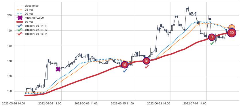 上涨趋势05-26 14:00-07-15 14:00,均线50确认关键支撑3处
