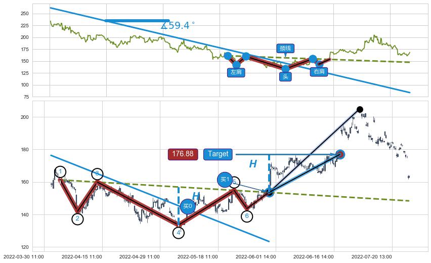 ➣ 【已确认突破】头肩底 起点:04-01:10,突破点:05-31:09,形态共186交易小时