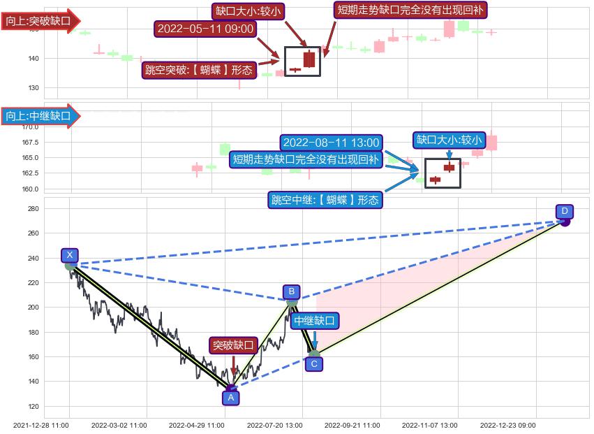 ➢ 跳空突破【蝴蝶】形态关键点后,后续非关键走势也无缺口回补迹象,突破缺口可信度提高