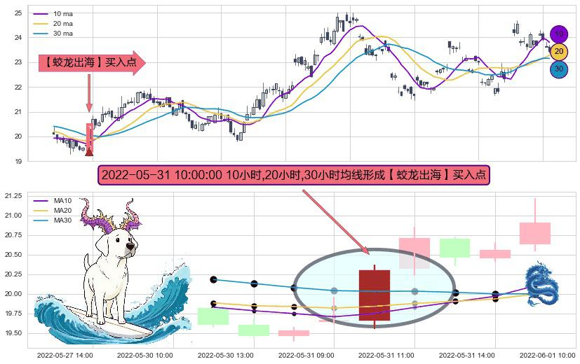 ⚀ 2022-05-31 10:00:00小时显现 10小时-20小时-30小时均线 【蛟龙出海】买入点 看多信号,后市看涨,买入