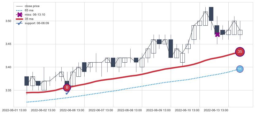⚀ 2022-06-28 14:00:00小时-2022-08-10 14:00:00小时显现 30小时-60小时-90小时均线 【高山滑雪】买入点 看多信号,后市看涨,买入
