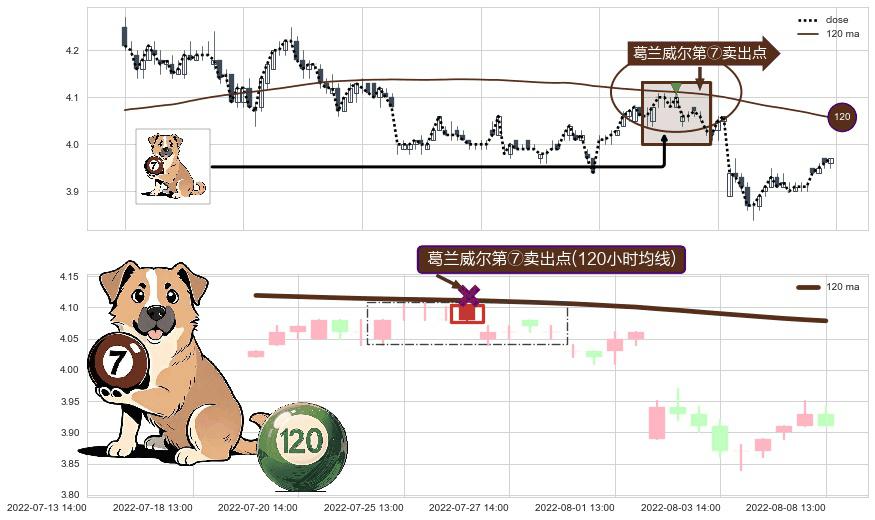 ⚁ 120小时均线 第⑦卖出点 属于 均线服从 信号,属于趋势运行的【常态】即信号期望为下降趋势的中继