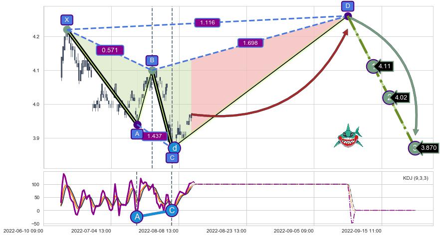 ➣ 预测:2022-09-06 09:00,【试探阻力】稳定目前下跌趋势的前提下,预测价格:3.776