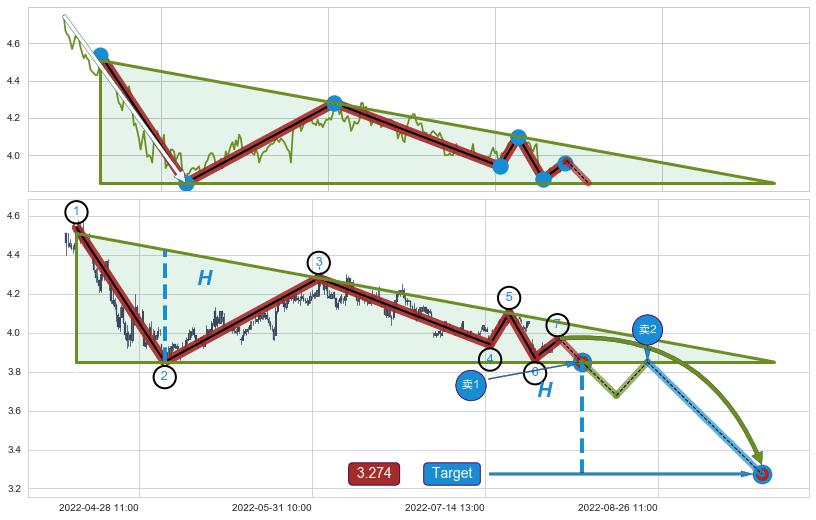 ➣ 最小中继整理跌幅→𝐇: 0.7900 (𝐇旗杆的长度:旗杆起点→顶点)