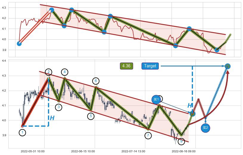 ➢ 【仅预测突破】最后价格:3.970与预测突破价格:4.04→【空间临近】后续最小【整理】第一目标价格→(08-23:11: 4.36 )