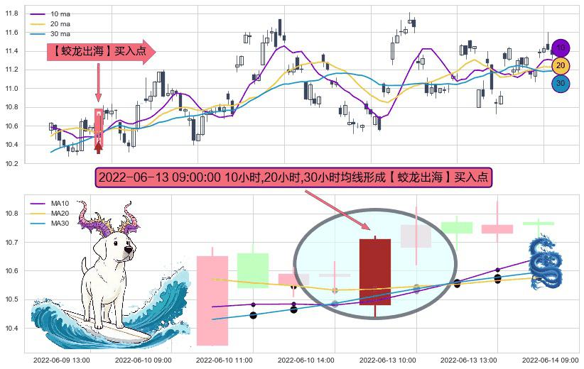 ⚀ 2022-06-13 09:00:00小时显现 10小时-20小时-30小时均线 【蛟龙出海】买入点 看多信号,后市看涨,买入