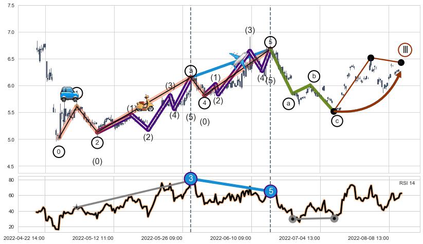 ➢ a,c调整浪MACD, RSI, KDJ走势都【未出现】背离,abc走势延续, 5浪反转概率增强