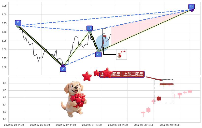 ➣ D点拟合预测价格7.14,距离最后交易收盘价格6.43相差 +11.00%