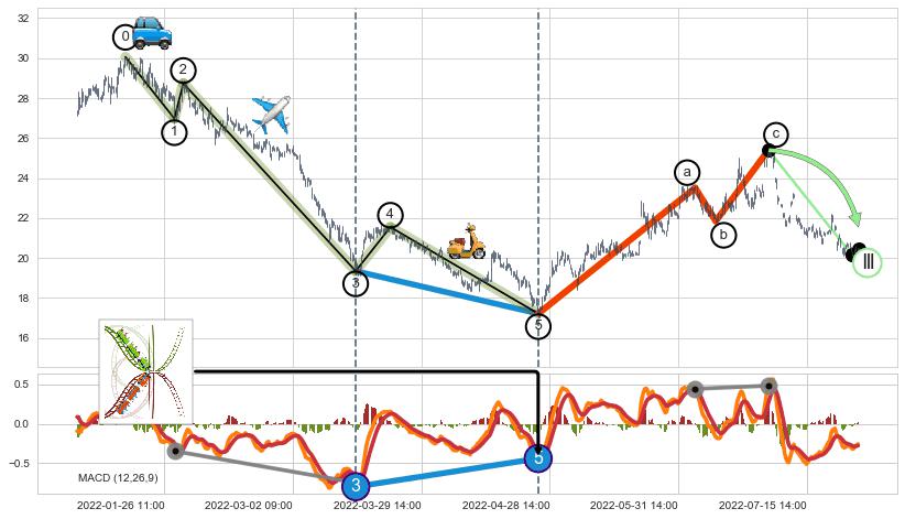 ➣ a,c调整浪MACD, RSI, KDJ走势都【未出现】背离,abc走势延续, 5浪反转概率增强