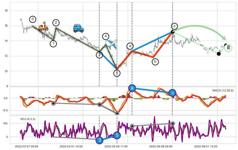 ➣ 第一, 三, 五浪下跌动能逐渐【增强变大】,趋势不断加固