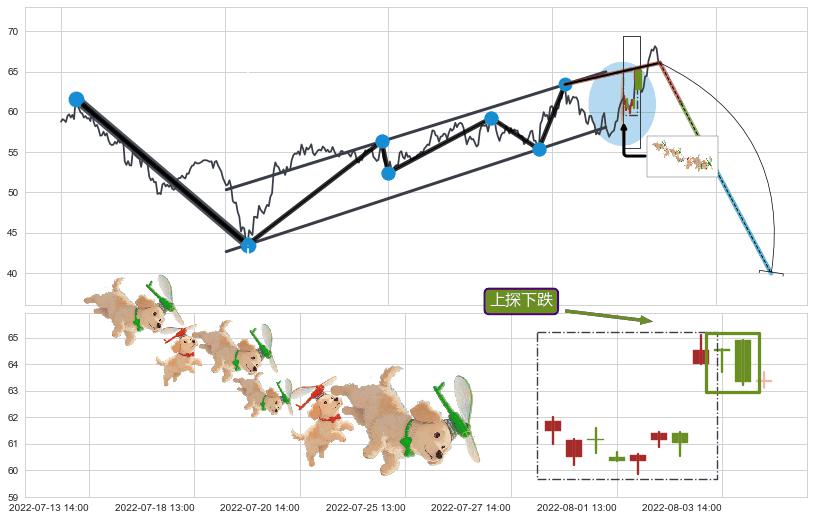 ➢ 收盘价(07-26:14: 58.88 )→回踩→第二根k线高点(07-21:13: 58.29 )