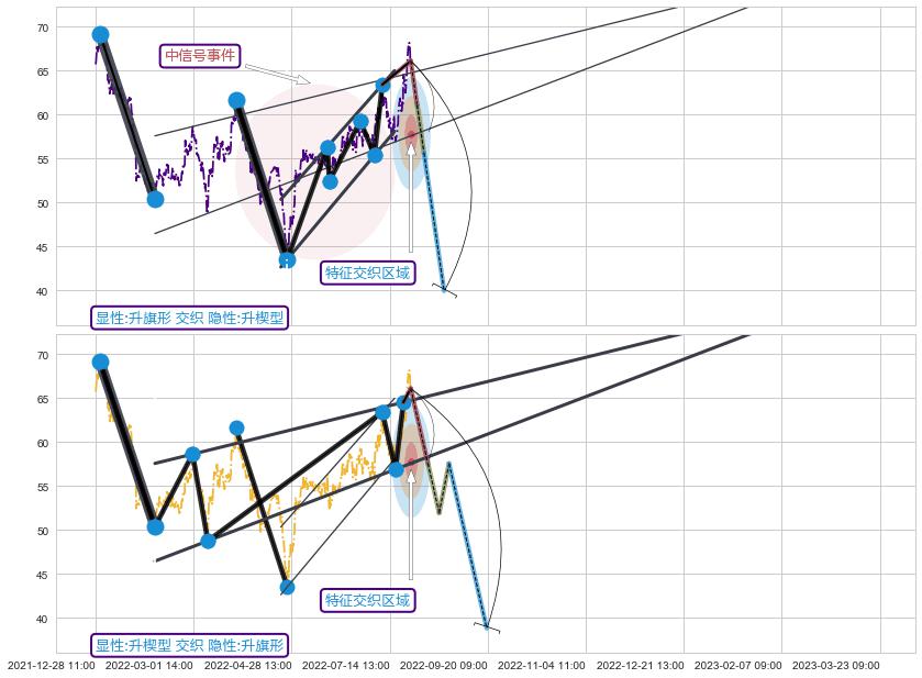 | 5 🅚:吊颈线(上吊线) ➕ 📐:升旗形猜想突破点临近,临近关键支撑位,预期下沉突破下跌 ☞ 看空信号 ⇥ 【🅚线】交织【图形】⇥ 综合量化分数: 44 | > |