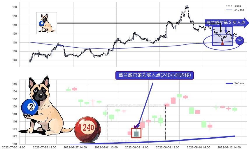 形态多维评估: ⚀ 2022-08-02 14:00:00-小时显现 葛兰威尔均线 240小时均线 第②买入点 上升趋势的中继信号,后市看涨,买进信号