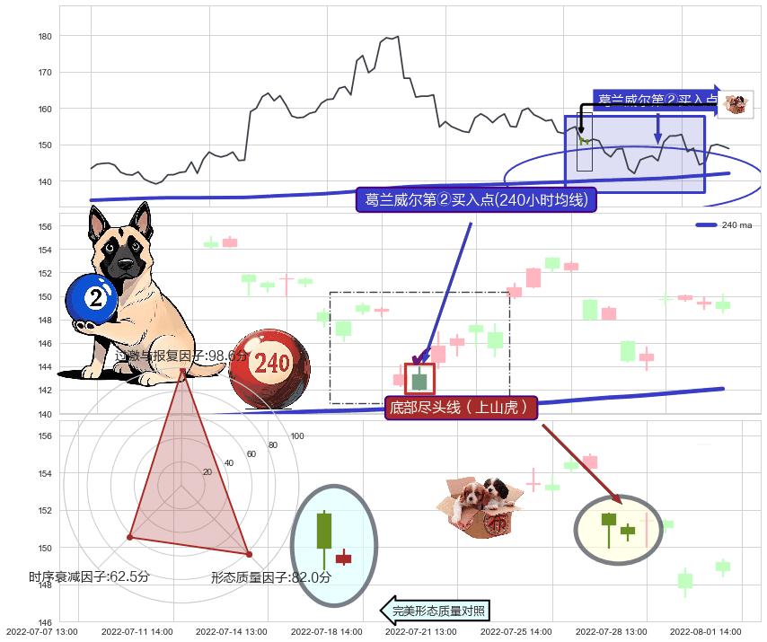 | 2 🅚:葛兰威尔第③买入点 ➕ 🌊:波浪理论下跌5浪延续反弹:猜想回调C点击穿突破,猜想持续蓄力反弹abc上涨方向(大周期趋势均值回复后小周期持续趋势跟踪) ☞ 看多信号 ⇥ 【均线】交织【图形】⇥ 综合量化分数: 62 | > |