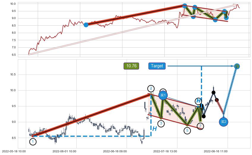 ➣ D点拟合预测价格10.32,距离最后交易收盘价格9.70相差 +6.37%