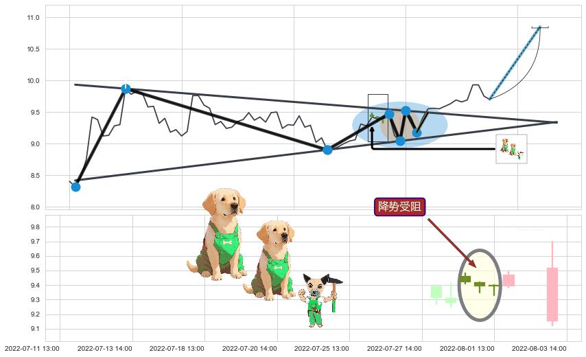 ♘ 阻力价格位9.75,可信任强度58.58%,距离最后交易2022-08-12 14:00形成的收盘价格9.70相差 +0.55%
