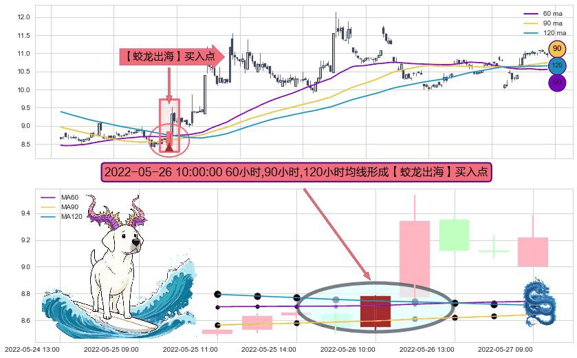 形态多维评估: ⚀ 2022-05-26 10:00:00小时显现 60小时-90小时-120小时均线 【蛟龙出海】买入点 看多信号,后市看涨,买入