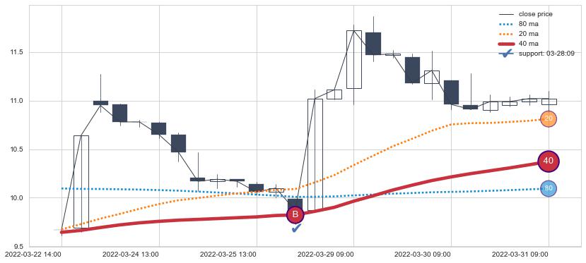 上涨趋势03-22 14:00-03-31 09:00,均线40确认关键支撑1处