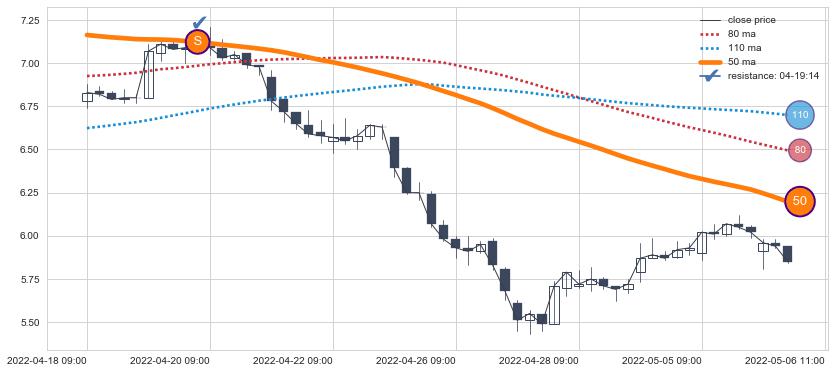 ⚂ 2022-06-09 14:00:00小时突然冒出一根大阳线,一下子顶穿三条均线且收盘价收在各条均线之上