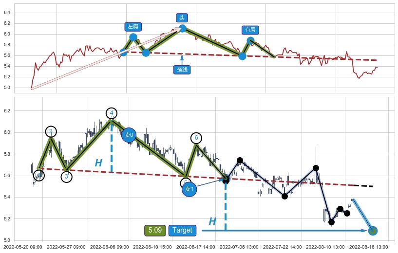 ➢ 【卖1】: 激进型 卖点→(06-22:14: 5.57 )形成突破头肩顶【反转】形态