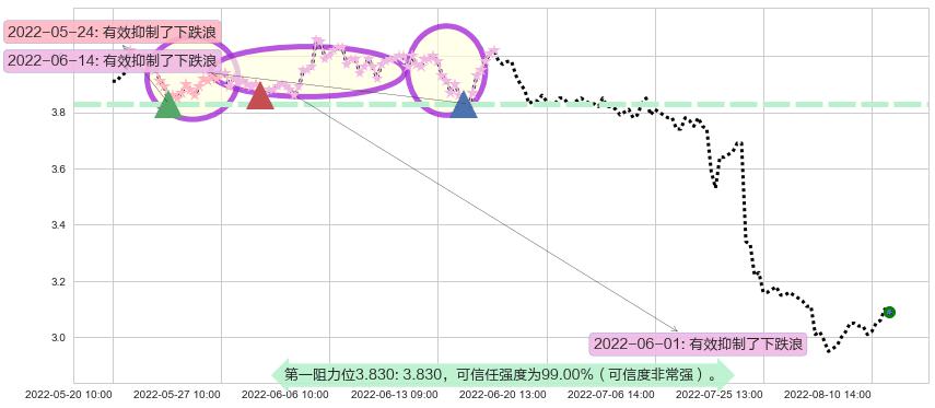 ♘ 阻力价格位3.830,可信任强度99.00%,距离最后交易2022-08-12 14:00形成的收盘价格3.090相差 +23.95%