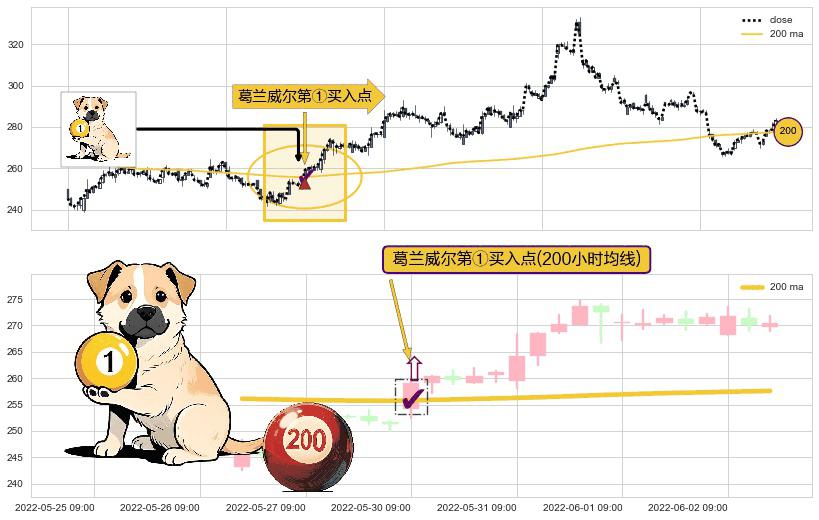 ⚀ 2022-05-30 09:00:00-小时显现 葛兰威尔均线 200小时均线 第买①入点 走势反转见底信号,后市看涨,买进信号