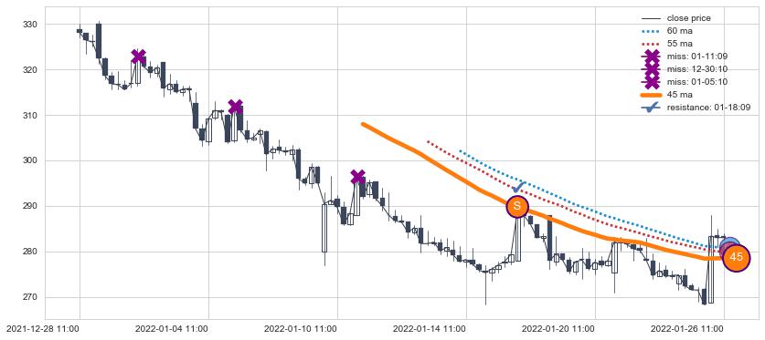 ⚃ 在破位点附近ma走势明显平稳迹象,稍后的走势中ma下垂迹象也出现,信号【可信度中等偏上】