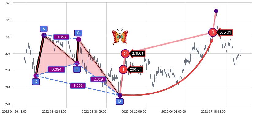 ➣ 已达成看涨【蝴蝶】形态全部的预期目标