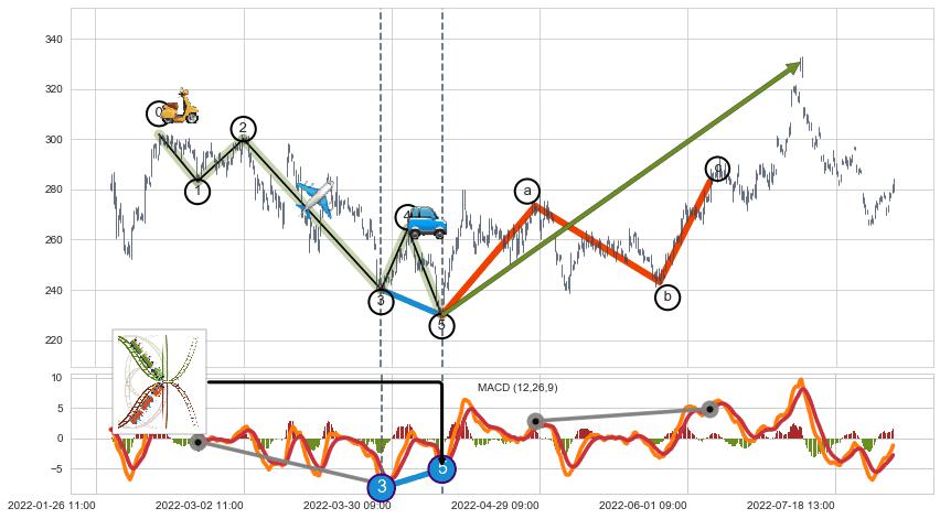 ➣ a,c调整浪MACD, RSI, KDJ走势都【未出现】背离,abc走势延续, 5浪反转概率增强