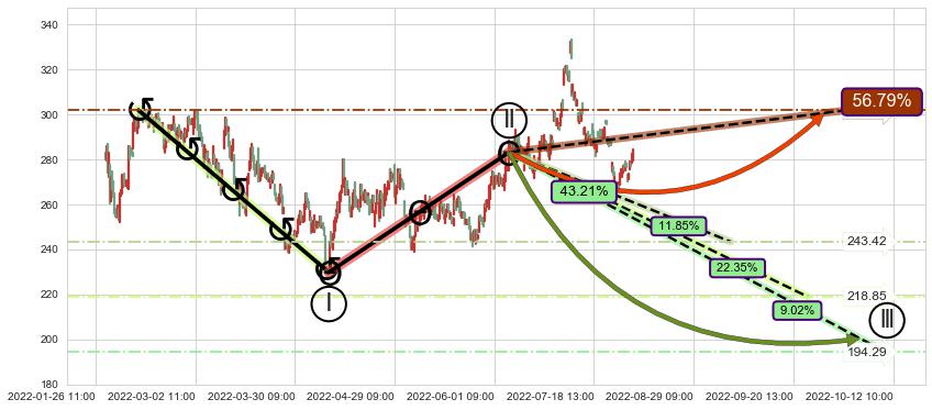♘ 支撑价格位283.18,可信任强度44.07%,距离最后交易2022-08-12 14:00形成的收盘价格283.27相差 -0.03%