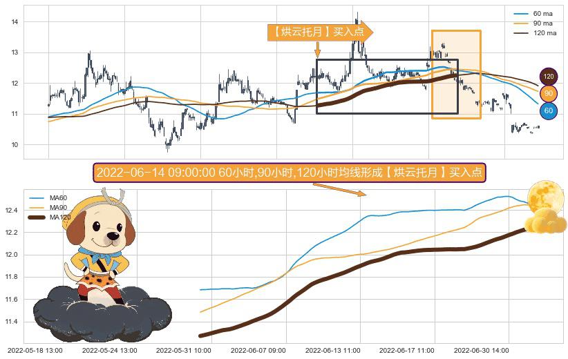 ⚀ 2022-05-30 13:00:00小时-2022-07-06 14:00:00小时显现 60小时-90小时-120小时均线 【烘云托月】买入点 看多信号,后市看涨,买入