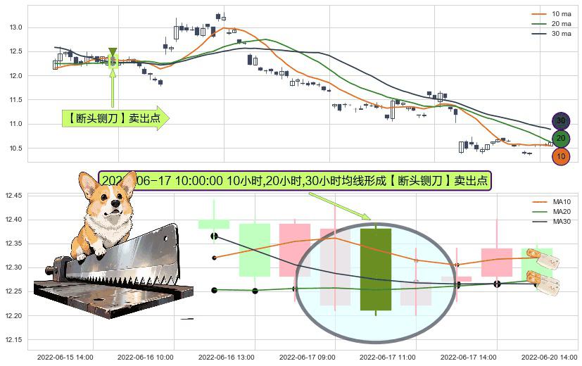 ⚀ 2022-06-17 10:00:00小时显现 10小时-20小时-30小时均线 【断头铡刀】卖出点 看空信号,后市看跌,卖出