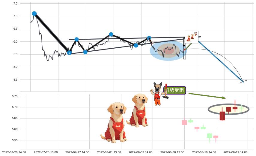 ♘ 阻力价格位6.45,可信任强度96.11%,距离最后交易2022-08-12 14:00形成的收盘价格5.69相差 +13.32%