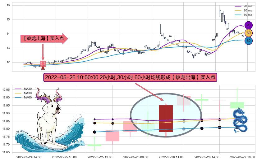 ⚀ 2022-05-26 10:00:00小时显现 20小时-30小时-60小时均线 【蛟龙出海】买入点 看多信号,后市看涨,买入