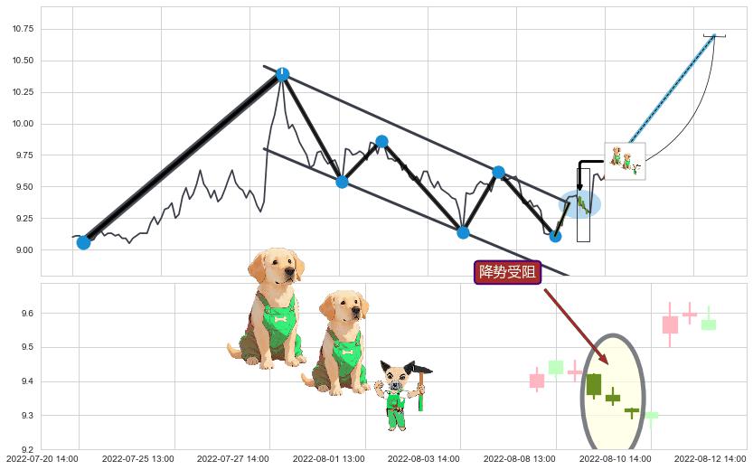 ♘ 支撑价格位9.18,可信任强度85.73%,距离最后交易2022-08-12 14:00形成的收盘价格9.57相差 -4.13%