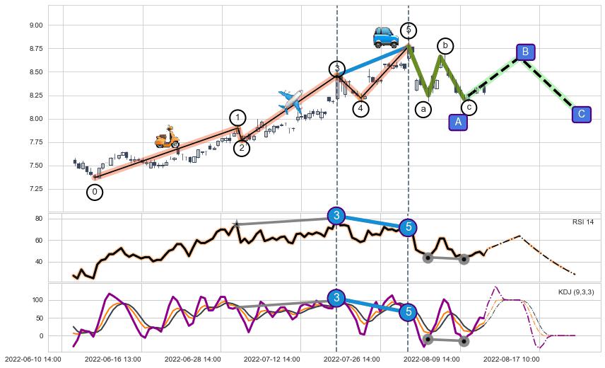 ➢ 第五驱动浪【动能】:🚙 77.49%, 是3个上涨浪中【中等】动能