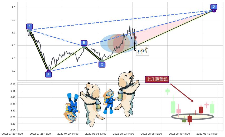 | 6 🅚:【高山滑雪】买入点 ➕ 📡:谐波螃蟹猜想c点下沉接近b点后强支撑来临拉升上涨(均值回复) ☞ 看多信号 ⇥ 【均线】交织【图形】⇥ 综合量化分数: 54 | > |