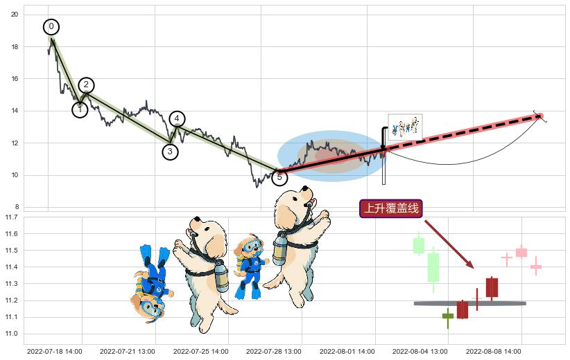 | 5 🅚:【高山滑雪】买入点 ➕ 🌊:波浪理论猜想下跌浪5已形成,猜想后续形成abc反弹上涨(均值回复) ☞ 看多信号 ⇥ 【均线】交织【图形】⇥ 综合量化分数: 63 | > |