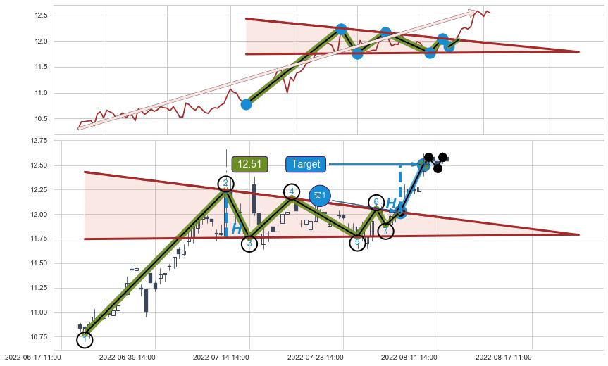 ➢ 【买1】: 激进型 买点 →(08-05:14: 12.02 )形成突破上升【对称】三角形整理【整理】形态