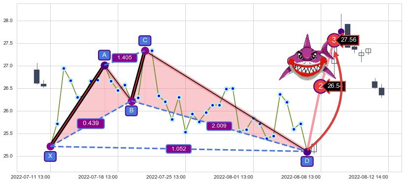 ➣ 已完成【鲨鱼】形态起点X: 07-20:13, 终点D: 08-09:14, 共30交易小时