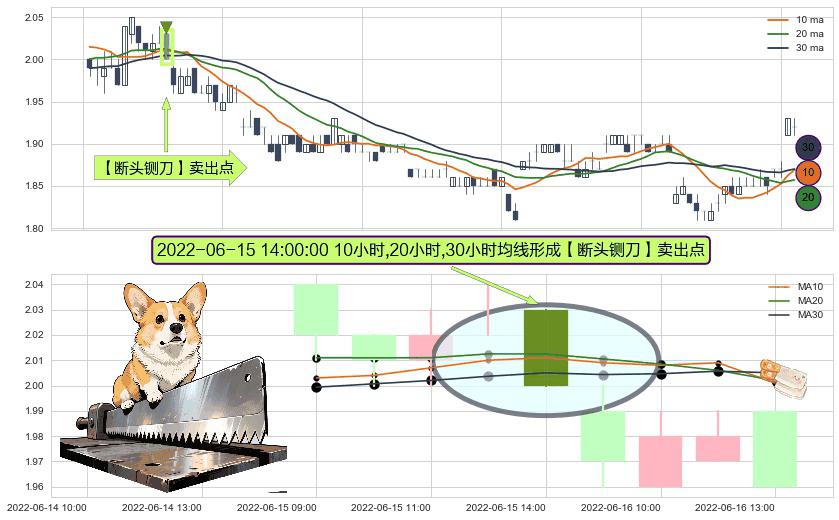 ⚀ 2022-06-15 14:00:00小时显现 10小时-20小时-30小时均线 【断头铡刀】卖出点 看空信号,后市看跌,卖出