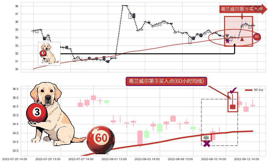 形态多维评估: ⚀ 2022-08-11 13:00:00-小时显现 葛兰威尔均线 60小时均线 第③买入点 上升趋势的中继信号,后市看涨,买进信号