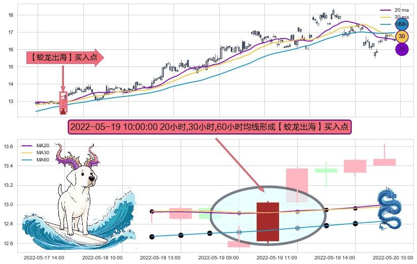 形态多维评估: ⚀ 2022-05-19 10:00:00小时显现 20小时-30小时-60小时均线 【蛟龙出海】买入点 看多信号,后市看涨,买入