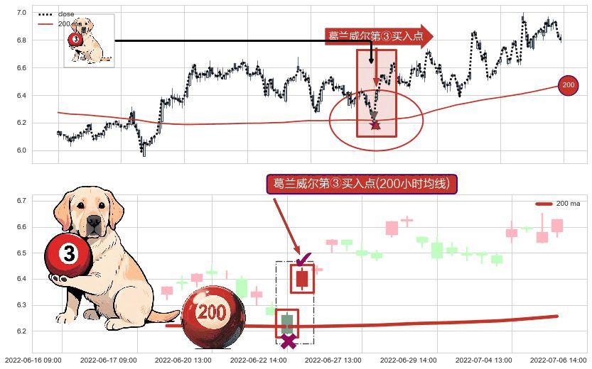 ⚁ 200小时均线 第③买入点 属于 均线服从 信号,属于趋势运行的【常态】即信号期望为上涨趋势的中继