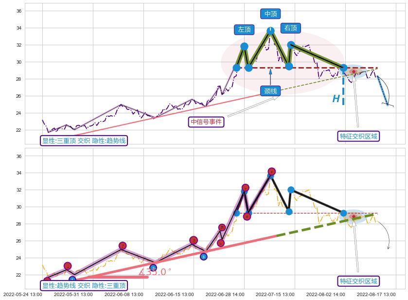 ➢ 【卖1】: 激进型 卖点→(08-02:13: 29.28 )形成突破三重顶【反转】形态
