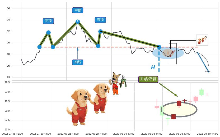 从2022-07-25 13:00至2022-08-12 14:00,共包含30个小时,阶段股价上涨1.21%,阶段股价变动位移路程比: 1 : 28